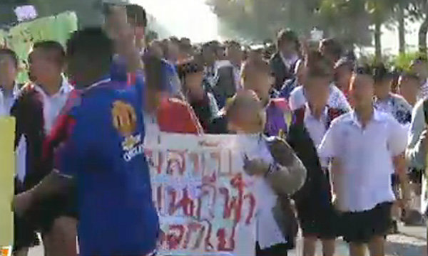นักเรียนลุกฮือปิดถนนประท้วงไล่ผอ.โรงเรียนออก